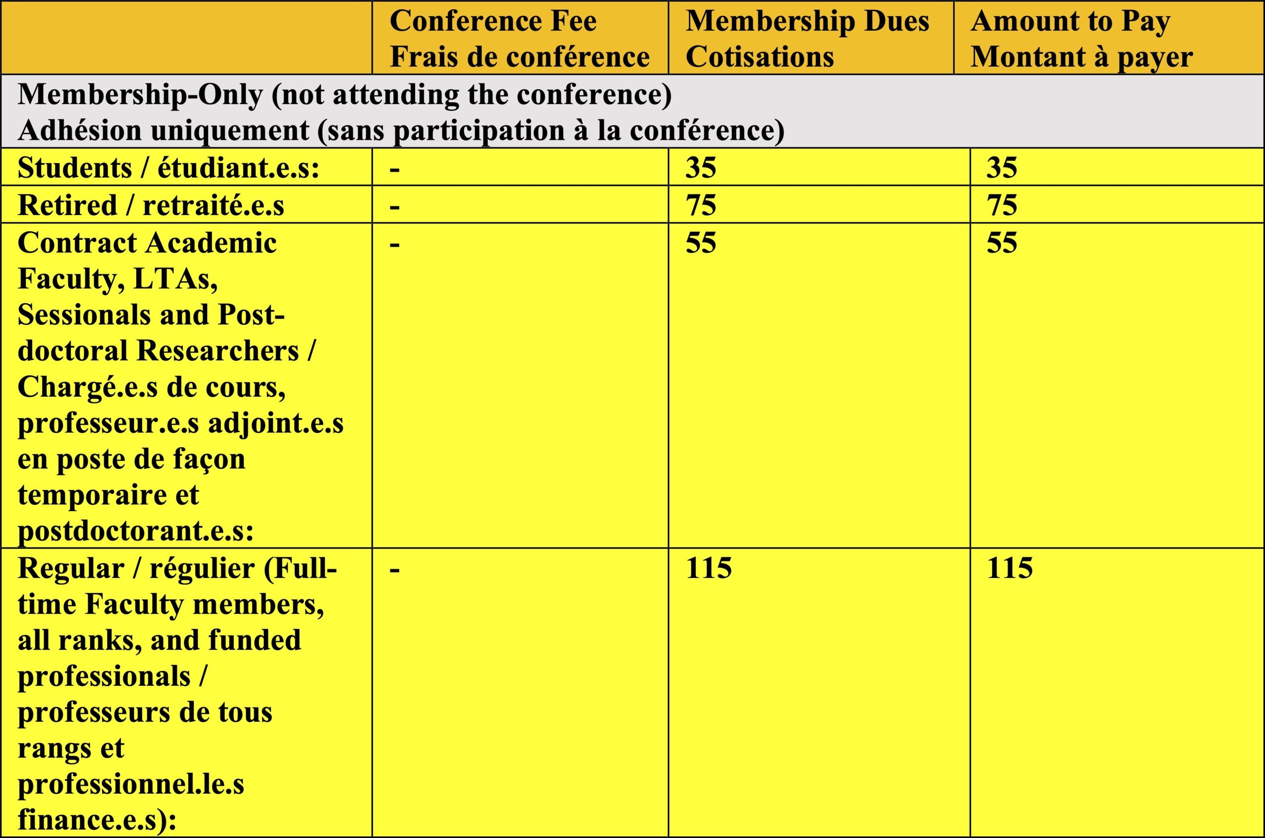 Membership & Conference Registration • Adhésion et Frais d’inscription à la conférence